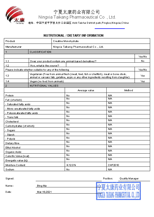 NINGXIA TAIKANG PHARMACEUTICAL LIMITED COMPANY